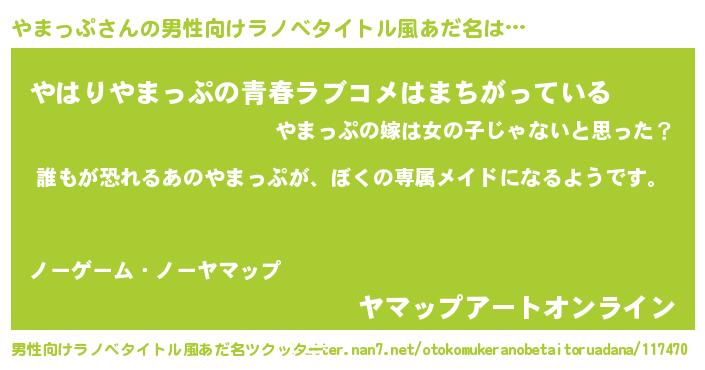 | 女子向けラノベタイトル風あだ名 | 『異世界でカフェやまっぷを開店しました。』 |