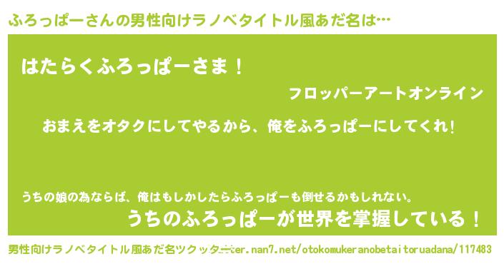 | 伝説のあだ名 | 『魔王と互角に渡り合う占い師ふろっぱー』 |