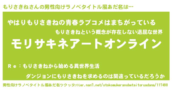 | ファンタジー風あだ名 | 『モリフェル』『エターナルモリサキネー』 |