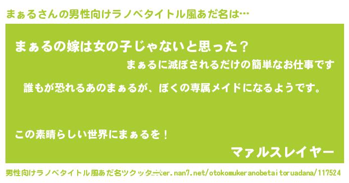 | ヘコむあだ名 | 『まぁる(笑)』『まぁお』『酢こんぶ』 |