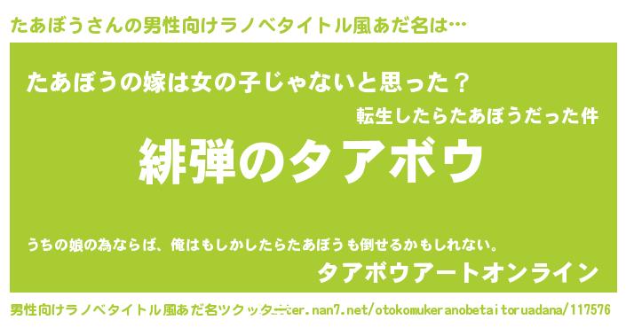 | 胡散臭い通販商品みたいなあだ名 | 『信頼と実績のペンダント…その名も「たあぼう」』 |
