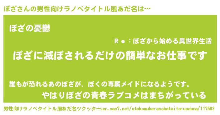 | 女子向けラノベタイトル風あだ名 | 『横柄ぼざと宰相陛下』『ぼざ伯爵の花嫁』 |