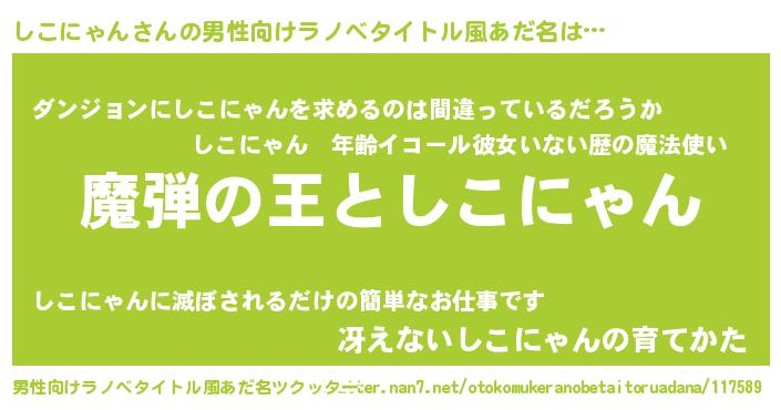 | 女子向けラノベタイトル風あだ名 | 『乙女ゲームの破滅フラグしかない悪役しこにゃんに転生してしまった…』 |