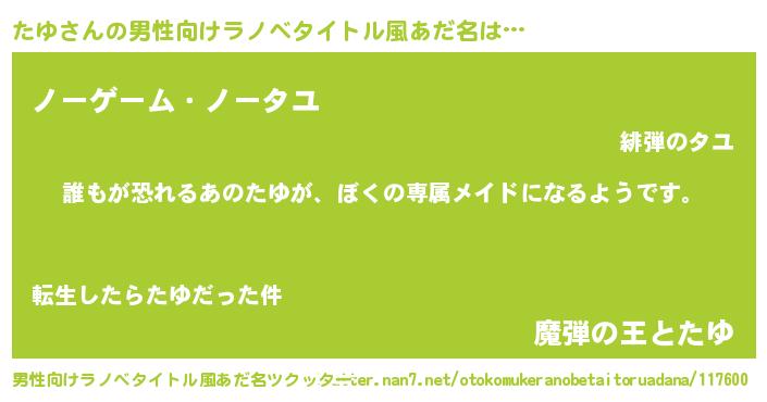 | ヘコむあだ名 | 『たゆ(苦笑)』『たゆにゅー』 |