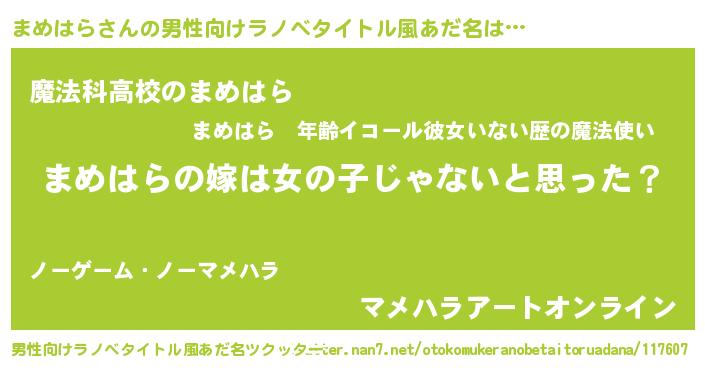 | 女子向けラノベタイトル風あだ名 | 『まめはら様がみてる』『まめはら恋絵巻』 |