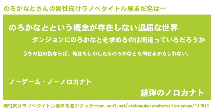 | ファンタジー風あだ名 | 『エターナルノロカナトー』 |