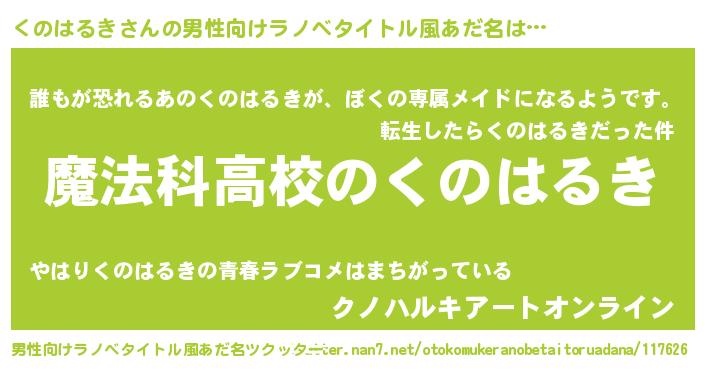 | 肩書あだ名 | 『くのはるき閣下』『くのはるき担任』 |