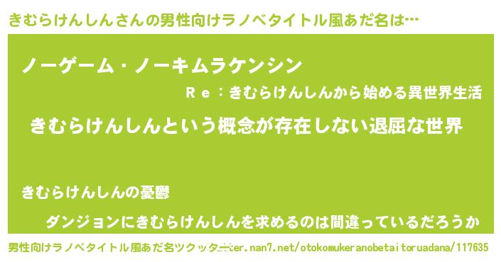 | 意味不明あだ名 | 『永久保存きむらけんしん』 |