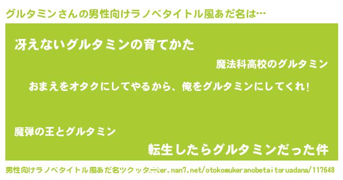 | 女子向けラノベタイトル風あだ名 | 『グルタミン夫妻のなれそめ』 |