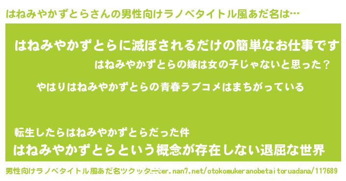 | 女子向けラノベタイトル風あだ名 | 『はねみやかずとらの雑貨屋さん』 |