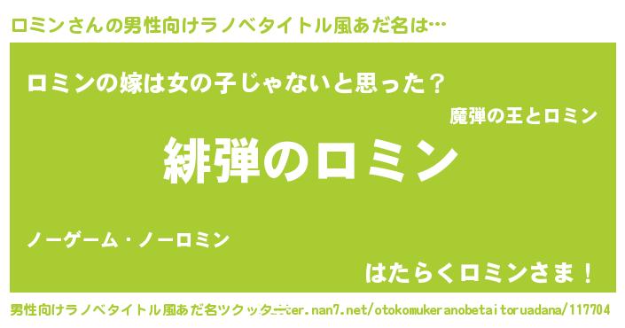 | 女子向けラノベタイトル風あだ名 | 『シンデレラロミン家の靴箱館』 |