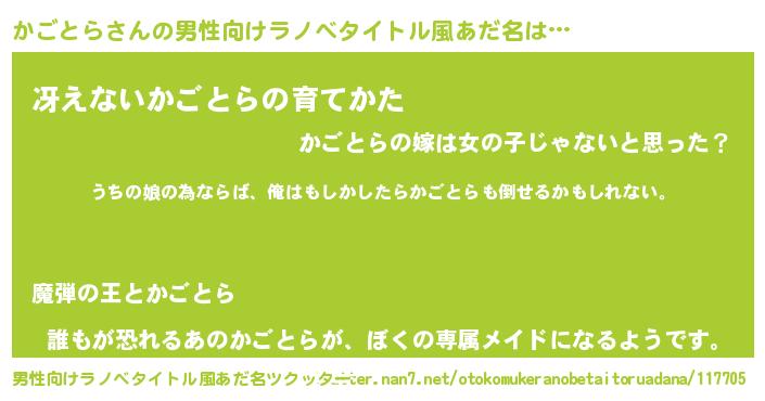 | 女子向けラノベタイトル風あだ名 | 『かごとら伯爵の花嫁』 |
