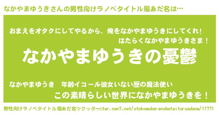 | 胡散臭い通販商品みたいなあだ名 | 『モテモテ間違いなし霊験あらたかなお札…その名も「なかやまゆうき」』 |