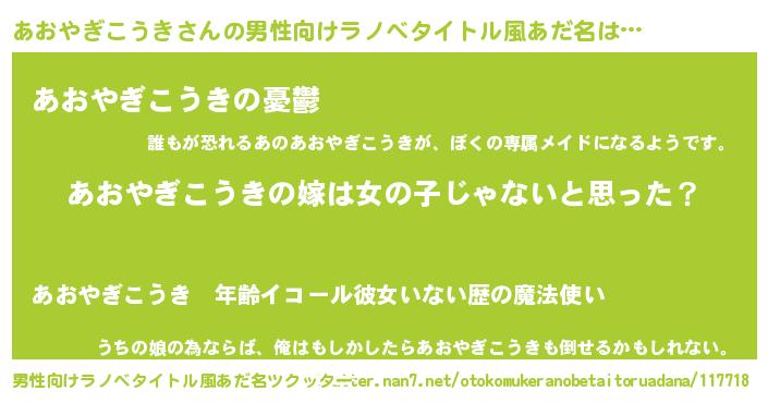 | 女子向けラノベタイトル風あだ名 | 『あおやぎこうき様がみてる』 |