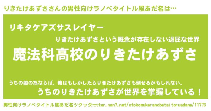 | 女子向けラノベタイトル風あだ名 | 『りきたけあずさなんてお断りですっ。』 |