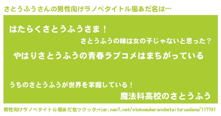 | 女子向けラノベタイトル風あだ名 | 『さとうふう伯爵の花嫁』 |