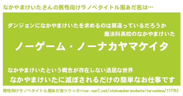 | ヘコむあだ名 | 『なかっ子』『なかやまけいた(苦笑)』 |