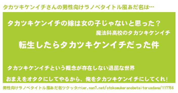 | 肩書あだ名 | 『タカツキケンイチ少将』 |