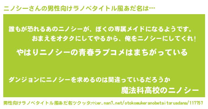 | 女子向けラノベタイトル風あだ名 | 『ニノシーの雑貨屋さん』 |