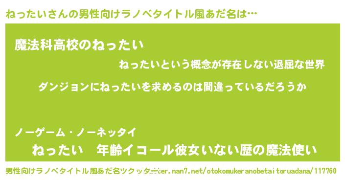 ねったいさんの男性向けラノベタイトル風あだ名をツクッター!