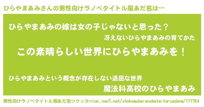 | 女子向けラノベタイトル風あだ名 | 『悪役ひらやまあみに転生したようですが、知った事ではありません』 |