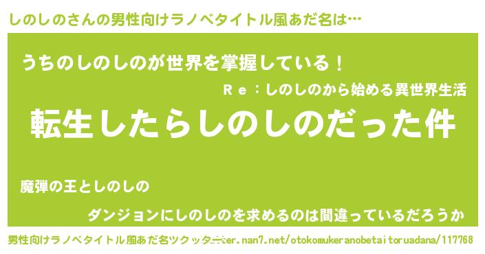 | ヒーロー風カッコイイあだ名 | 『幻影騎士シノ』『超時空戦士シノシノ』 |