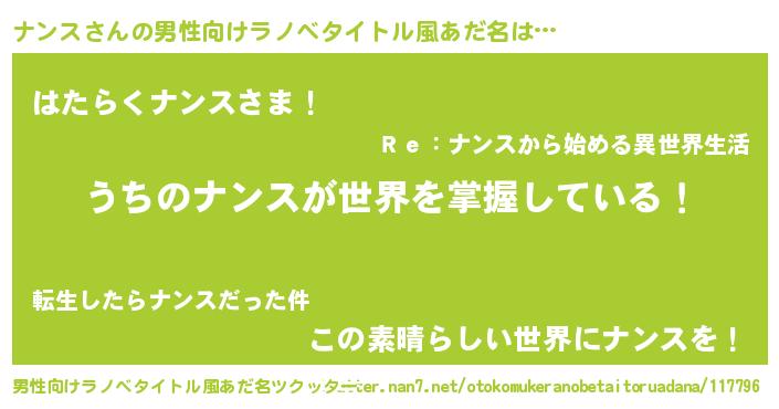 ナンスさんの男性向けラノベタイトル風あだ名をツクッター!