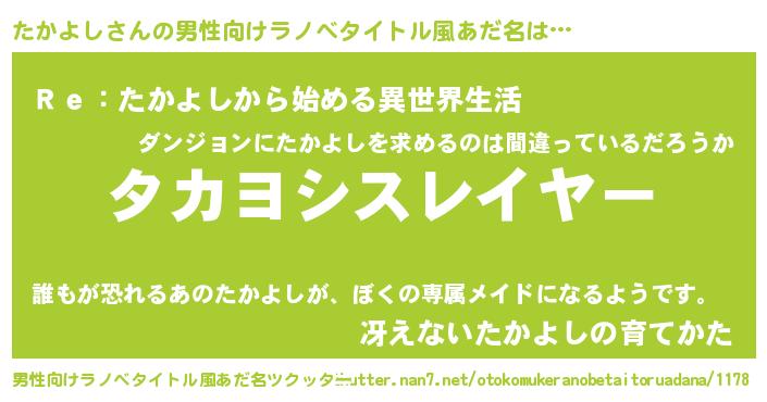 | ヒーロー風カッコイイあだ名 | 『超時空戦士タカヨシ』『炎刃騎士タカ』 |