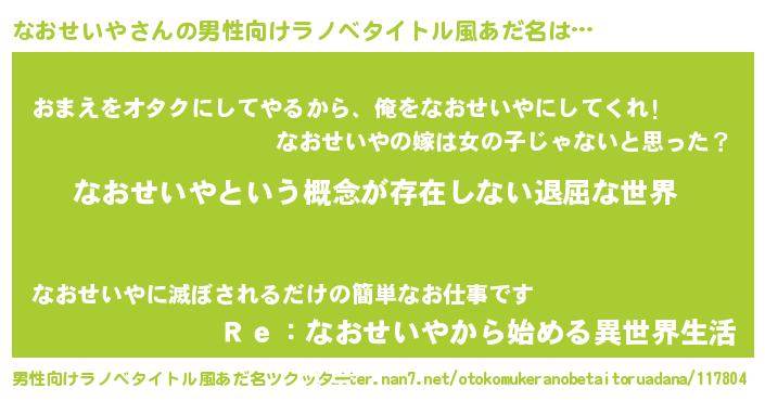 なおせいやさんの男性向けラノベタイトル風あだ名をツクッター!