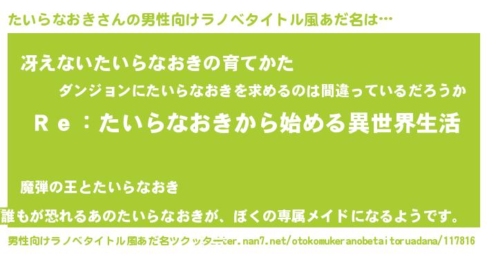 | 女子向けラノベタイトル風あだ名 | 『たいらなおきストレイドッグス』 |