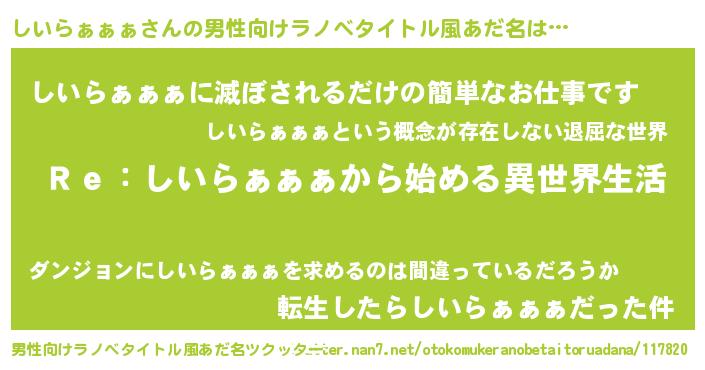 | 意味不明あだ名 | 『自称しいらぁぁぁ』 |