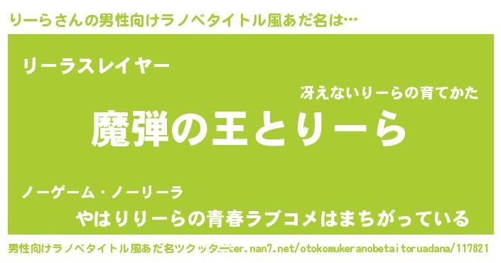 | 伝説のあだ名 | 『秘められし陰陽師りーら』 |