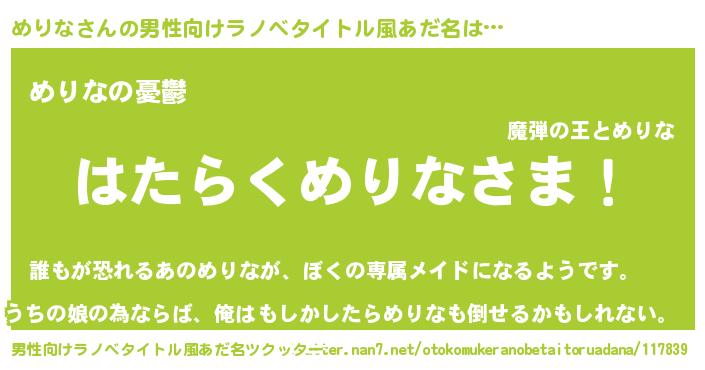 | 胡散臭い通販商品みたいなあだ名 | 『必ず成功する水晶球…その名も「めりな」』 |