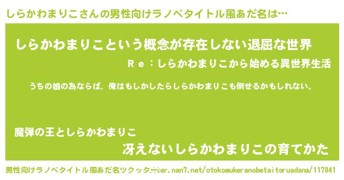 | 女子向けラノベタイトル風あだ名 | 『しらかわまりこの婚約者』 |
