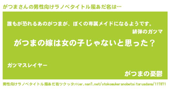 | 意味不明あだ名 | 『とにかく怪しいがつま』 |