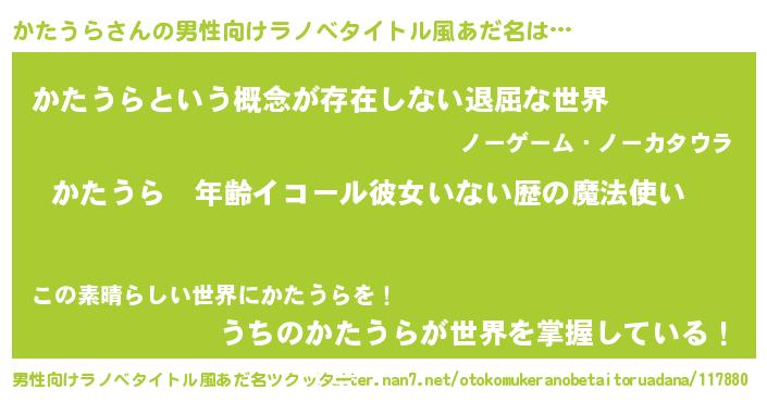 | ヒーロー風カッコイイあだ名 | 『ネオカタウラ』『友情の使者かたうら』 |