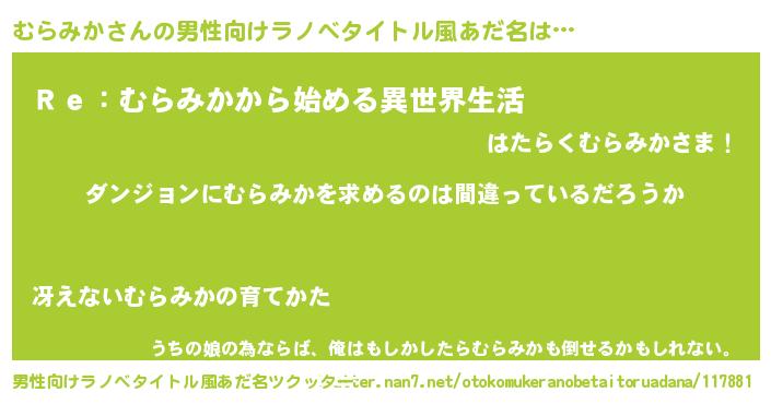| 胡散臭い通販商品みたいなあだ名 | 『信頼と実績のサプリメント…その名も「むらみか」』 |