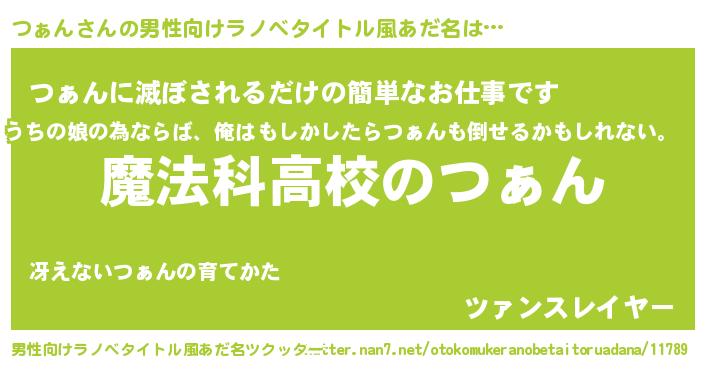 | 女子向けラノベタイトル風あだ名 | 『つぁんアンティーク』『つぁんの婚約者』 |