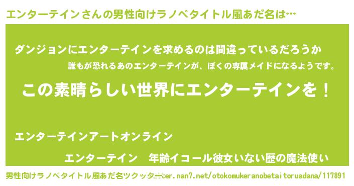 | 女子向けラノベタイトル風あだ名 | 『悪役エンターテインに転生したようですが、知った事ではありません』 |