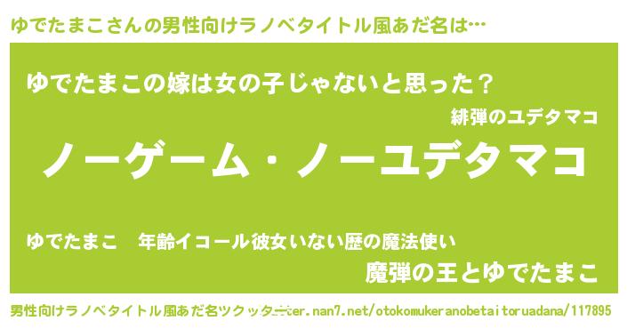 | ヒーロー風カッコイイあだ名 | 『慈愛の使者ゆでたまこ』『魔戒騎士ユデ』 |
