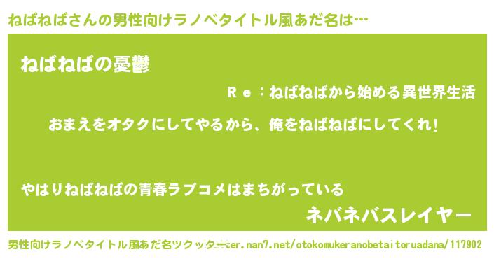 | ヒーロー風カッコイイあだ名 | 『正義の使者ねばねば』『仮面ネバダー』 |
