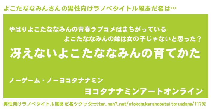 | 女子向けラノベタイトル風あだ名 | 『シンデレラよこたななみん家の靴箱館』 |