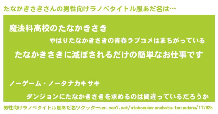 | ヒーロー風カッコイイあだ名 | 『究極戦士タナカキサキ』『幻影騎士タナ』 |