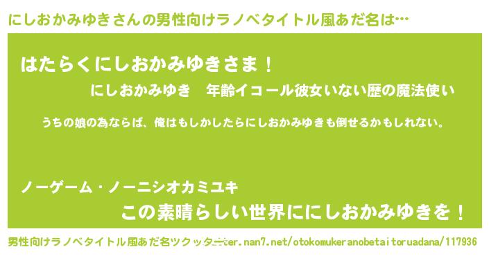 | 女子向けラノベタイトル風あだ名 | 『にしおかみゆきの婚約者』 |