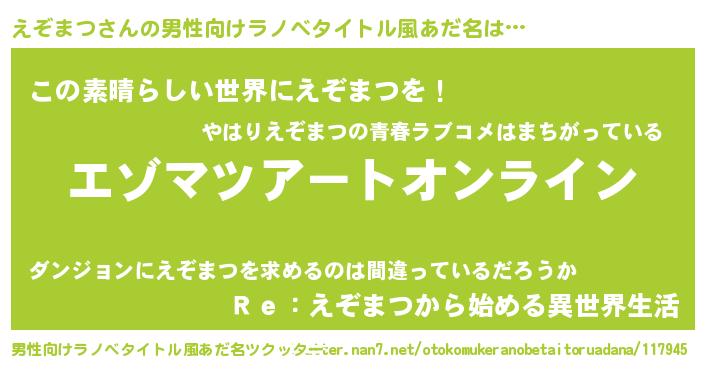 えぞまつさんの男性向けラノベタイトル風あだ名をツクッター!