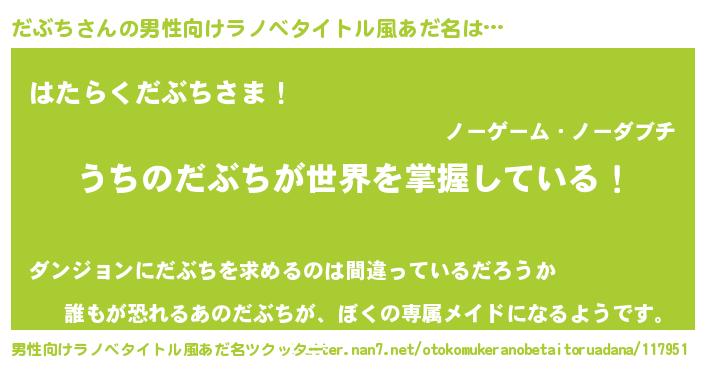 | ヒーロー風カッコイイあだ名 | 『ネオダブチ』『正義の使者だぶち』 |