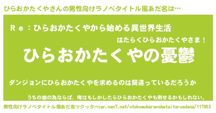 | 女子向けラノベタイトル風あだ名 | 『ひらおかたくや姫と円卓の騎士』 |