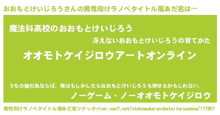 | 胡散臭い通販商品みたいなあだ名 | 『億万長者になれる水晶球…その名も「おおもとけいじろう」』 |