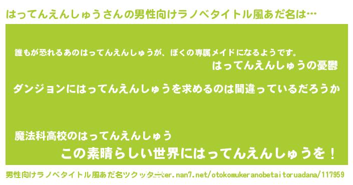 | 女子向けラノベタイトル風あだ名 | 『はってんえんしゅうは平凡を望む』 |