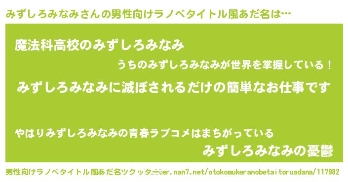 | 胡散臭い通販商品みたいなあだ名 | 『芸能人もオススメするアガリクス…その名も「みずしろみなみ」』 |